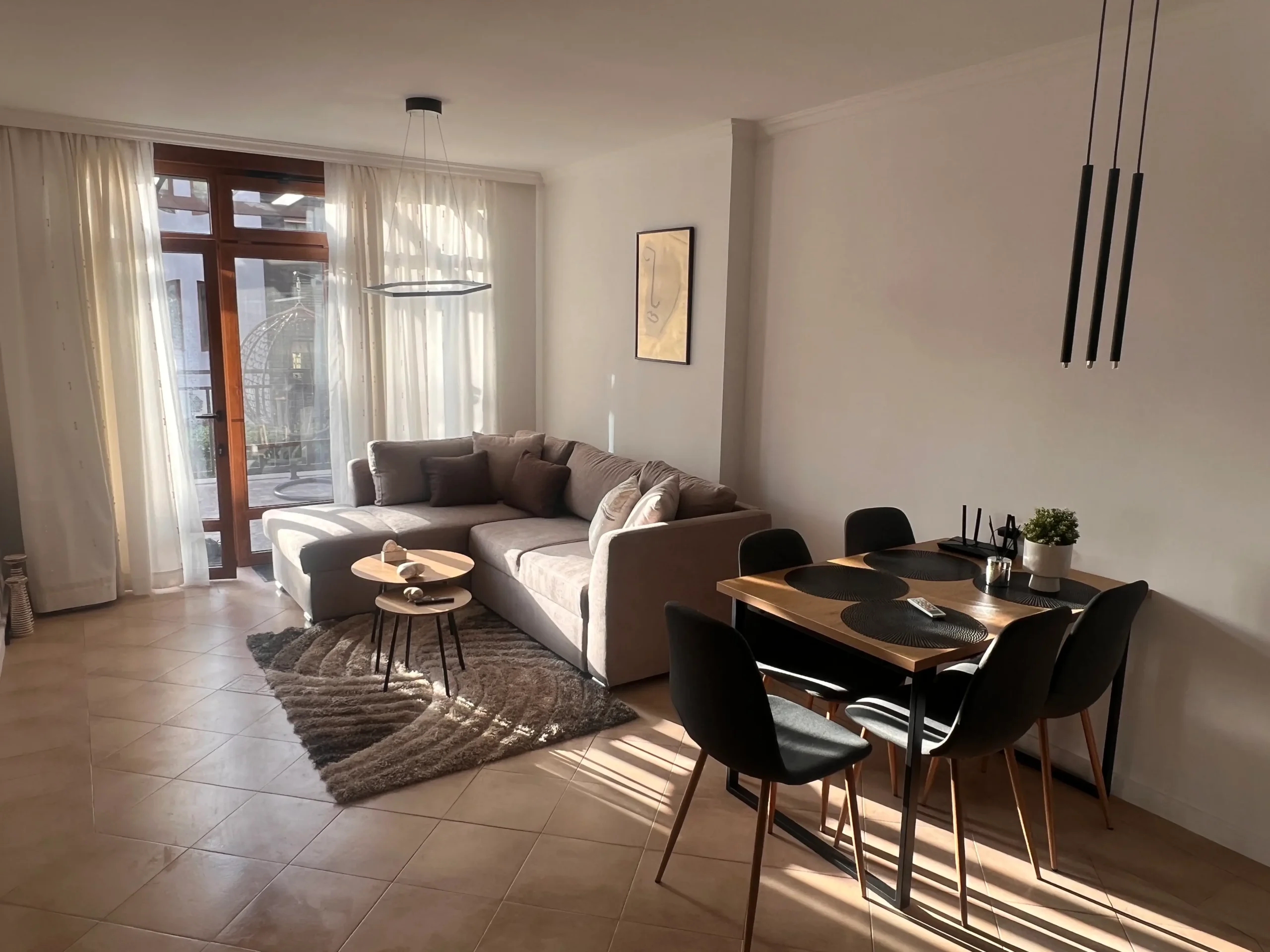The location of the apartment is in the quiet part (no noise from street traffic or the pools), but near the main entrance, central pool and the bridge to the beach, which makes everything just 1-2 minutes’ walk on the beautiful alleys in the complex.