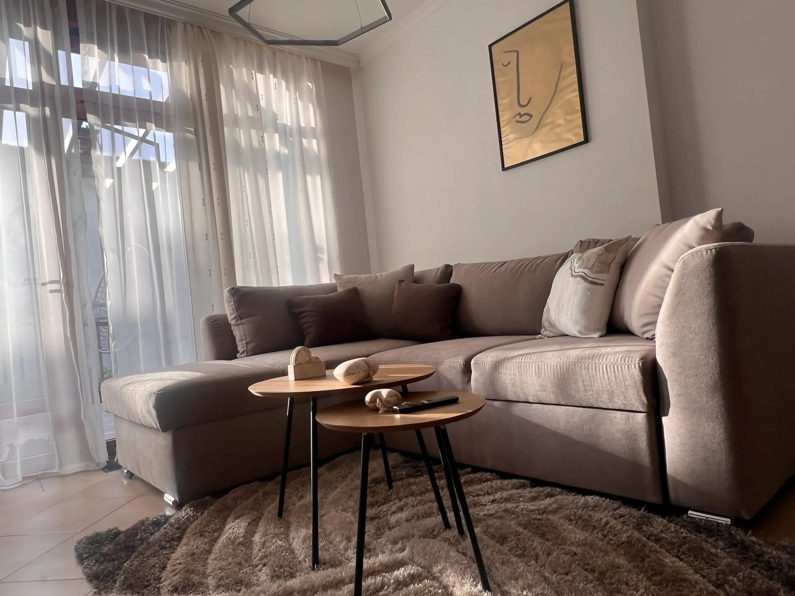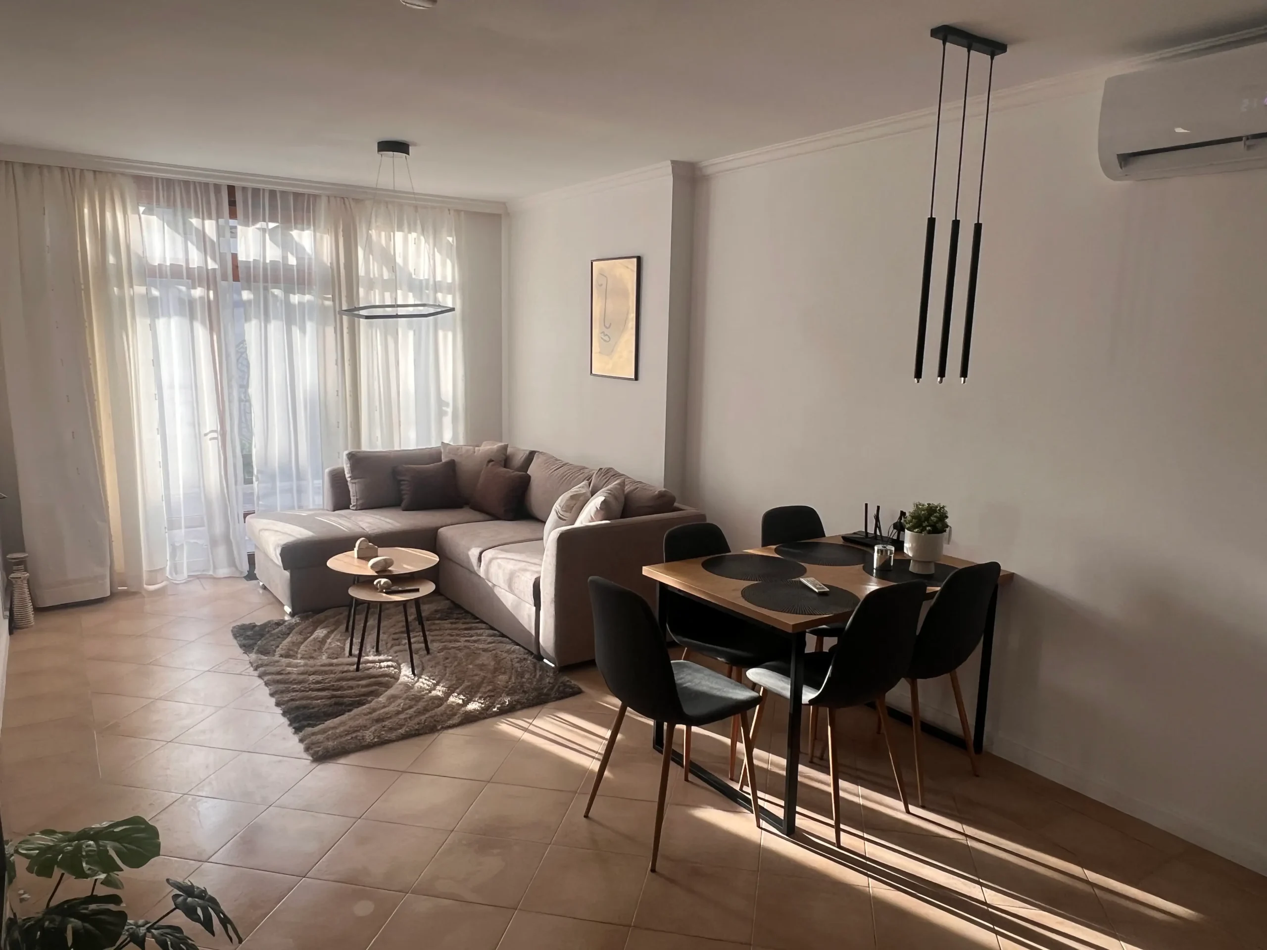 Modern and stylish, just renovated. Large terrace to enjoy the evenings in the open. It can sleep up to 6 people – 4 in the 2 bedrooms and up to 2 on the sofa bed. The apartment consists of living space (fully equipped kitchen, sitting space and dining space), 2 bedrooms and a bathroom.
